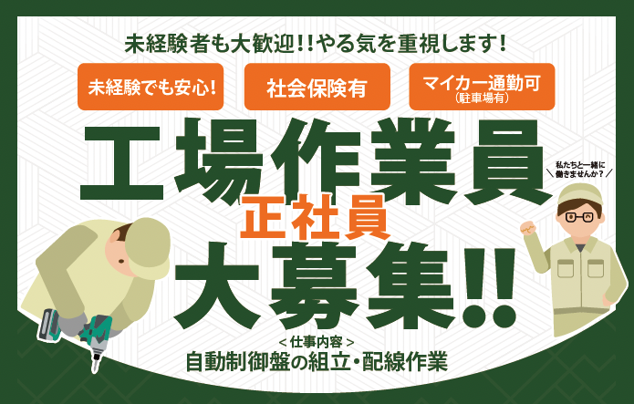 「急募!」工場作業員(正社員)大募集!
